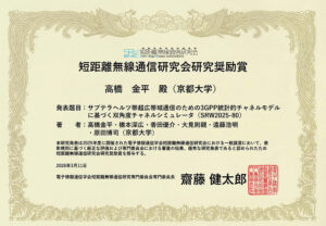 電子情報通信学会短距離無線通信研究会 研究奨励賞・優秀学生賞・優秀ポスター賞を受賞